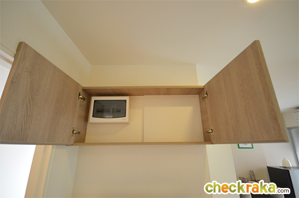 ด้านบนเหนือชั้นวางทีวี เปิดตู้ออกมาเป็นเจอกับตู้เบรคเกอร์