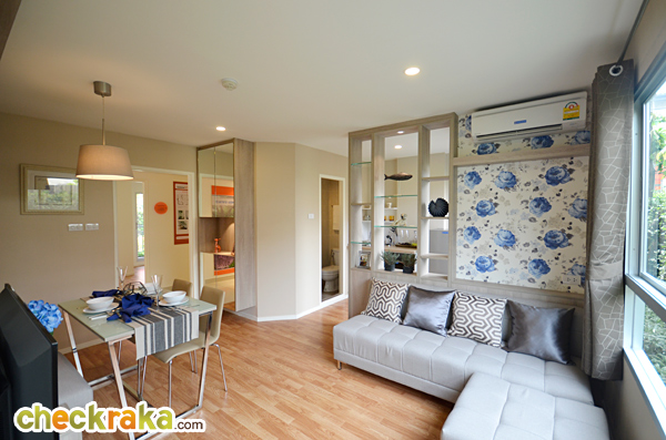 มีฉากกั้นเพื่อความเป็นสัดส่วนระหว่างห้องนั่งเล่น และห้องครัว