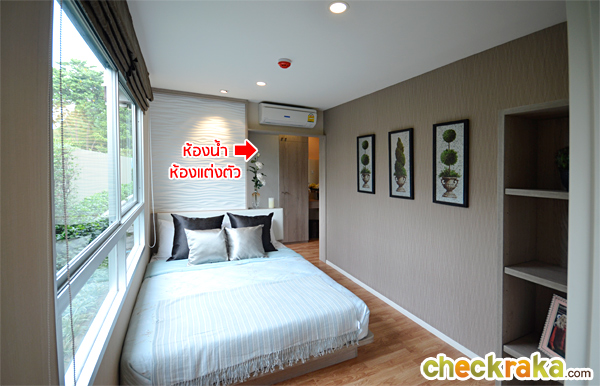 ในห้องนอนเหมาะสำหรับวางเตียงขนาด 5 ฟุต เพื่อที่จะได้เหลือพื้นที่ข้างเตียงสำหรับตั้งโต๊ะหัวเตียงได้