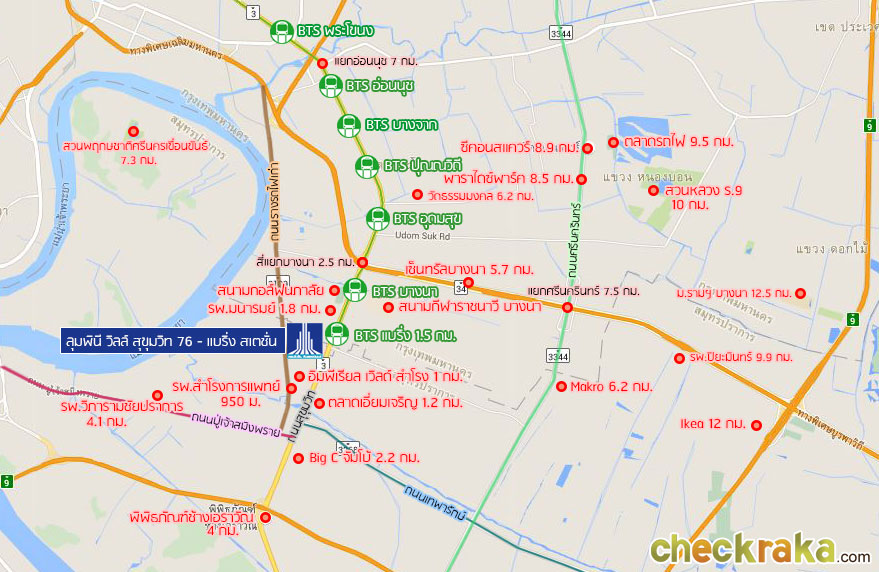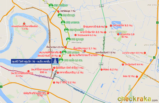 รถไฟฟ้าเป็นอีกหนึ่งทางเลือกที่สะดวกสำหรับโครงการนี้ค่ะ ซึ่งแบริ่งเป็นสถานีที่ใกล้โครงการที่สุดในปัจจุบัน
