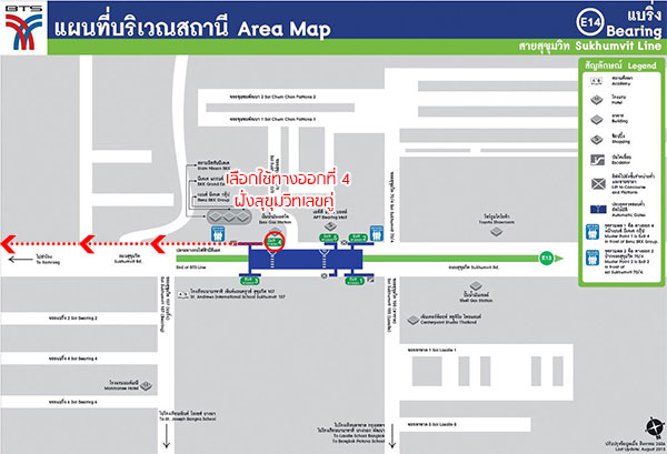 แผนที่บริเวณรถไฟฟ้าสถานีแบริ่ง (E14)
