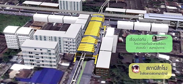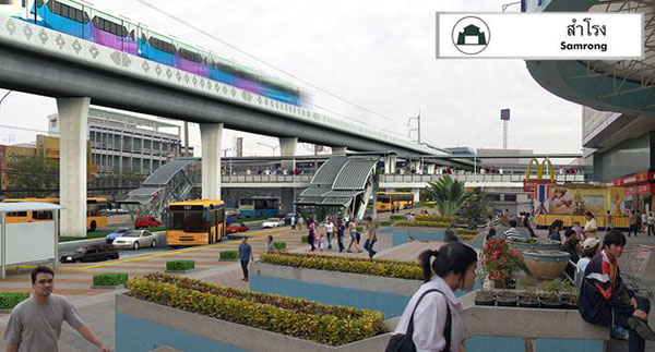 และยังเป็นจุดเชื่อมต่อกับโครงการรถไฟฟ้าสายสีเหลือง (ช่วงลาดพร้าว-สำโรง) ได้แก่สถานีสำโรง (YL23)
