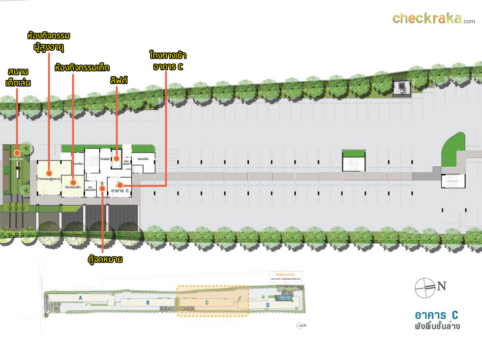 ระหว่างอาคาร B และอาคาร C จะเป็นสนามเด็กเล่น