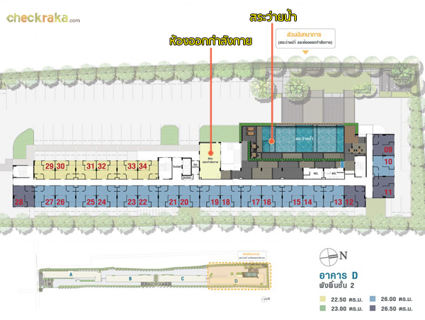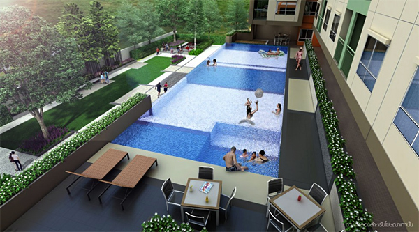 ส่วนบนชั้น 2 จะเป็นสระว่ายน้ำ และห้องฟิตเนส ซึ่งลูกบ้านทุกคนสามารถเข้ามาใช้บริการร่วมกันได้
