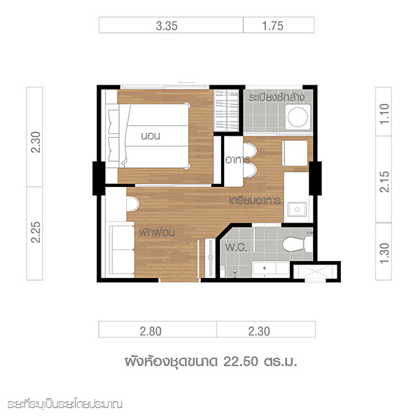 ภายในห้องนอนเล็กสามารถวางเตียงแบบ 3.50 ฟุต ได้