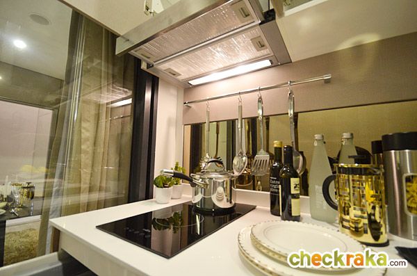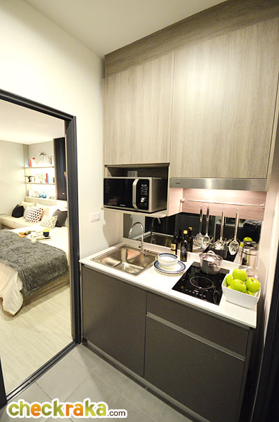 พื้นที่ครัวห้องนี้จะใหญ่กว่าห้องที่แล้ว เคาน์เตอร์ครัวได้คล้ายกันกับห้องที่แล้ว