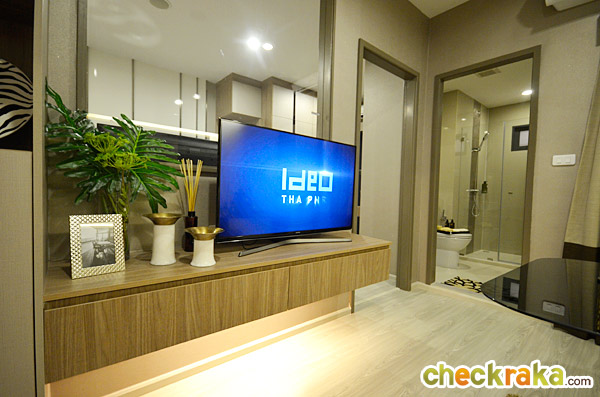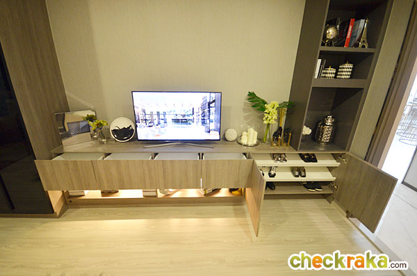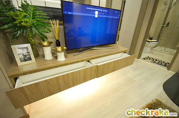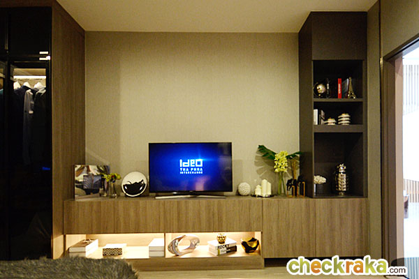 ได้ชั้นวางทีวีแบบ Built-in บริเวณปลายเตียง