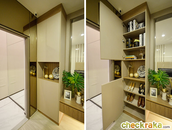 ลืมบอกว่าติดกับประตูทางเข้าห้อง ทางโครงการ Built-in ตู้เก็บของทรงสูงแบบบานเปิดมาให้ด้วย