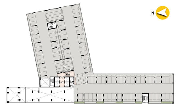 ชั้น 5 : แบ่งเป็นพื้นที่จอดรถ และส่วนของห้องพักอาศัยจำนวน 30 ยูนิต