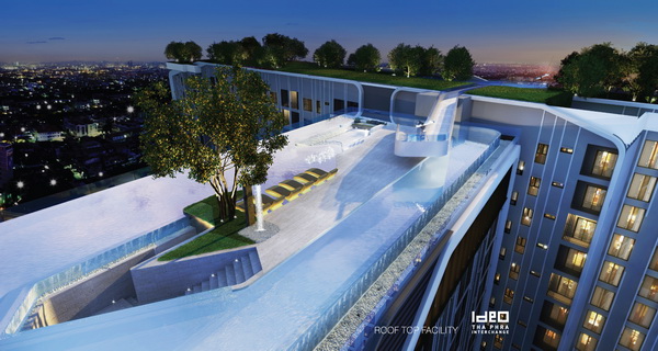 มุมมองจากชั้นดาดฟ้าของอาคารซึ่งทางโครงการจัดเป็นส่วนขนาดใหญ่แบบเต็มพื้นที่ พร้อมสระว่ายน้ำมาให้