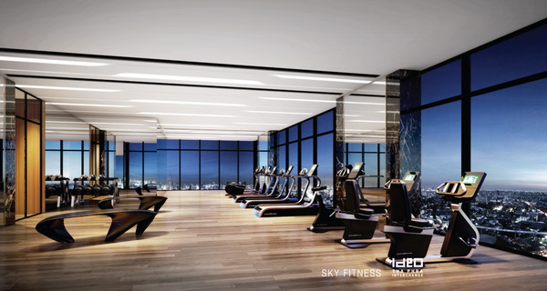 ภาพจำลองบรรยากาศ Sky Fitness บนชั้น 21 ที่ออกแบบเป็นกระจกใส สามารถเทควิวเมืองโดยรอบได้แบบเต็มๆ ตา