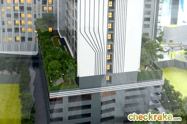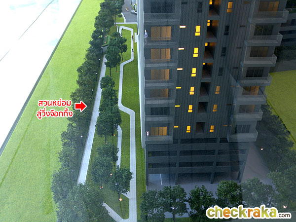 ฝั่งทิศตะวันตกของอาคารถูกออกแบบให้เป็นสวนหย่อม พร้อมลู่วิ่งสำหรับให้ลูกบ้านได้มาออกกำลังกายในวันพักผ่อนสบายๆ