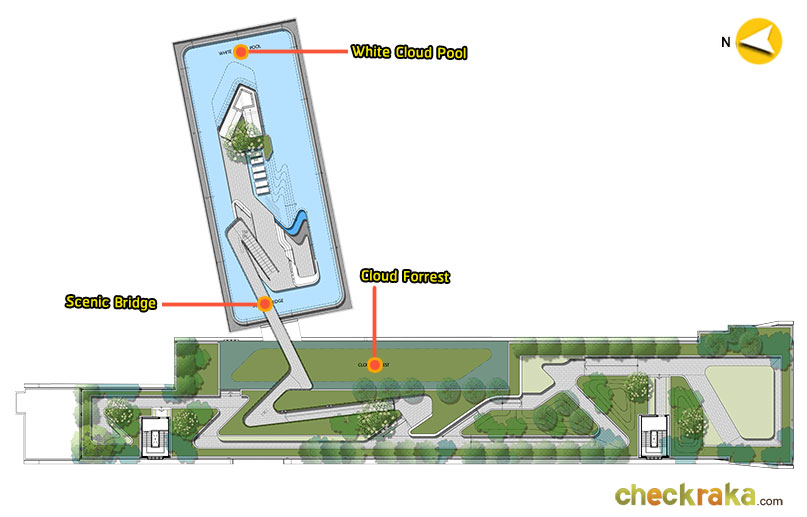 ภาพจำลอง Scenic Bridge สะพานที่เชื่อมต่อกับส่วนของสระว่ายน้ำไปยังสวนลอยฟ้าขนาดใหญ่