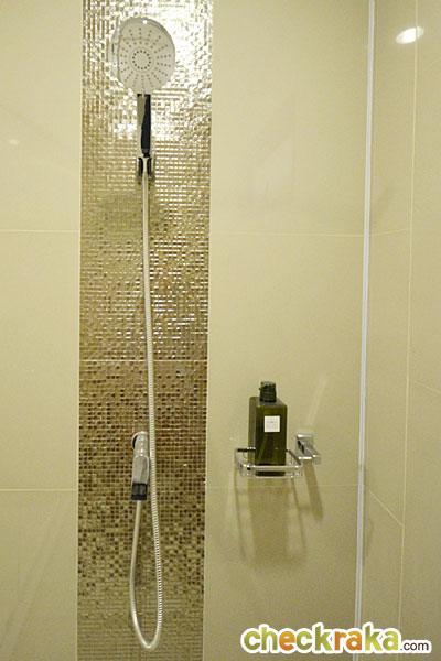 ได้ฝักบัวสายอ่อน และที่วางสบู่ของ American Standard แต่ไม่ได้เครื่องทำน้ำอุ่นนะคะ