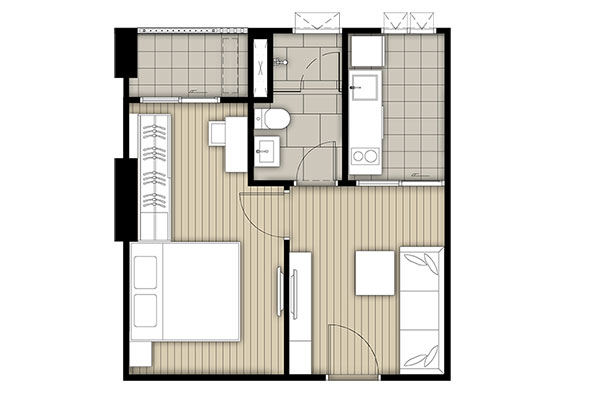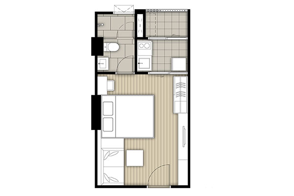 Layout ห้องแบบ 1 ห้องนอนขนาด 34.50 ตร.ม.