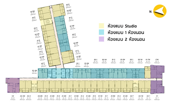 ห้องแบบ Studio (1 ห้องนอน, 1 ห้องน้ำ, 1 ห้องครัวปิด) - เนื้อที่ 27.50 - 28.00 ตร.ม. ( คลิกเพื่อชมแปลนห้อง ) ห้องแบบ 1 ห้องนอน (1 ห้องนอน, 1 ห้องน้ำ, 1 ห้องครัวปิด) - เนื้อที่ 34.50 ตร.ม. ( คลิกเพื่อชมแปลนห้อง ) ห้องแบบ 2 ห้องนอน (2 ห้องนอน, 1 ห้องน้ำ, 1 ห้องครัวปิด) - เนื้อที่ 34.30 - 35.00 ตร.ม. ( คลิกเพื่อชมแปลนห้อง ) ภาพห้องตัวอย่างแบบ Studio
