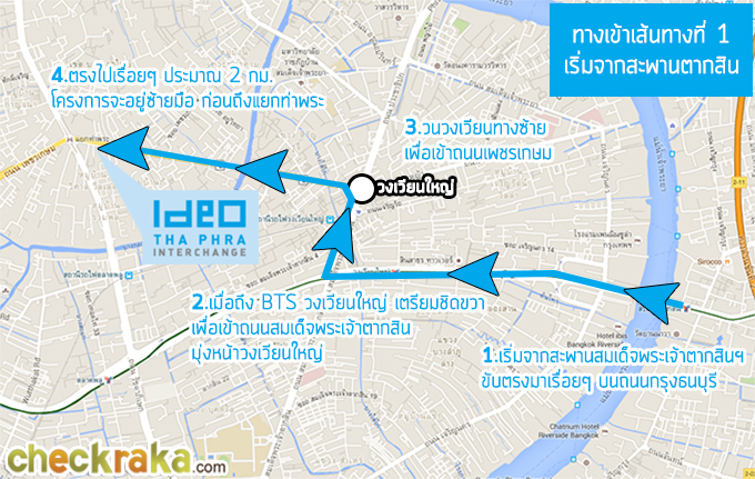 สำหรับการเดินทางด้วยรถไฟฟ้านั้น ปัจจุบันสามารถนั่งรถไฟฟ้า BTS มาลงสถานีวงเวียนใหญ่ได้ค่ะ แต่จะต้องต่อรถเข้ามาอีก ส่วนในอนาคตหากรถไฟฟ้าสายสีน้ำเงินส่วนต่อขยายแล้วเสร็จ สามารถนั่งมาลง "สถานีท่าพระ" ที่เป็นจุด Interchange เชื่อมต่อเส้น "บางซื่อ-ท่าพระ" กับเส้น "หัวลำโพง-บางแค" เข้าด้วยกัน ตัวสถานีนั้นอยู่ห่างจากโครงการ 100 เมตรค่ะ สำหรับกำหนดแล้วเสร็จของการก่อสร้างรถไฟฟ้านั้นคาดว่าจะให้บริการปี 2561 ค่ะ