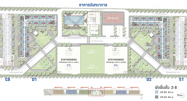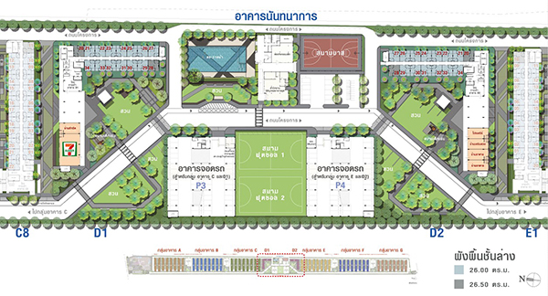 อาคารนันทนาการ ศูนย์รวมส่วนกลางของโครงการจะอยู่ระหว่างอาคาร D1 และ D2 ค่ะ