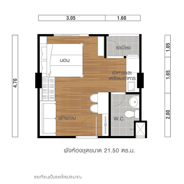 เข้าไปชมห้องขนาด 21.50 ตร.ม. กันเลยค่ะ