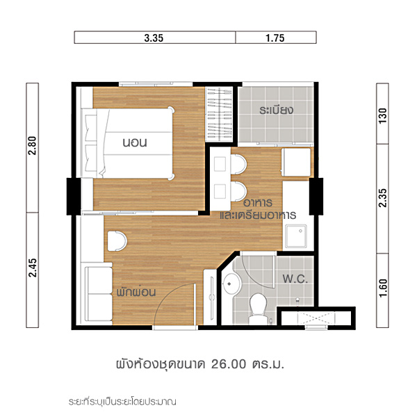 ภาพห้องตัวอย่างแบบ 1 ห้องนอน ขนาด 26.00 ตร.ม.