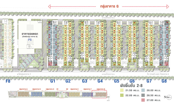 ชั้นที่ 2-8 อาคาร G1 - G8