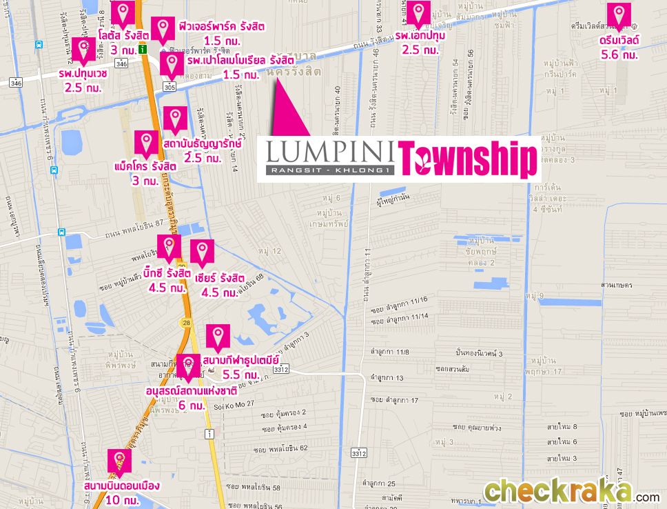 "สวนสนุกดรีมเวิลด์ (Dream World)" ระยะทางห่างจากโครงการประมาณ 5.6 กม.