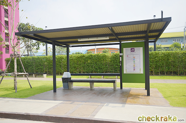 ส่วนกลางที่ให้มานั้นครบครันมากค่ะ เหมาะสมกับจำนวนยูนิตที่มีอยู่ โดยหลักๆ แล้วส่วนกลางจะรวมกันอยู่ที่อาคารนันทนาการ (ระหว่างอาคาร D1 และ D2) และมีอยู่ที่อาคารจอดรถ P1 ด้วยค่ะ อย่างที่ทราบกันว่าโครงการมีพื้นที่ใหญ่มาก ดังนั้นทางโครงการจึงจัดให้มีรถบริการรับส่งภายในโครงการด้วยค่ะ โดยจะจอดรับตามป้ายหยุดรถรับส่งตามจุดที่กำหนด ราคาอยู่ที่ 5 บาทตลอดสาย