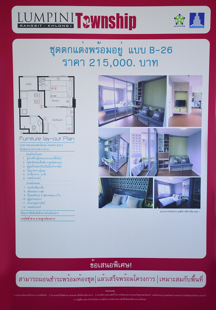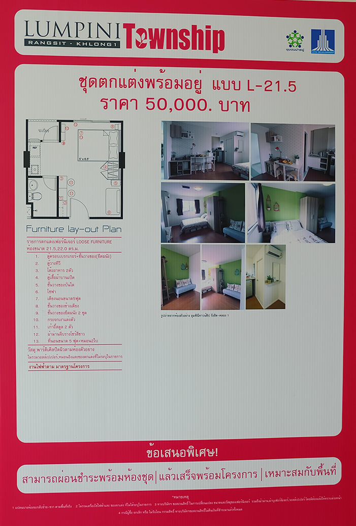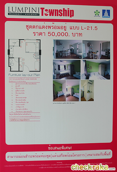 แบบบิวท์อิน แต่ส่วนนี้ต้องจ่ายเพิ่มต่างหากค่ะ ถือเป็นทางเลือกให้กับผู้ที่ไม่ถนัดเรื่องตกแต่งห้อง ส่วนวัสดุของทางโครงการก็ให้มาแบบไม่ได้แย่นะคะ สุขภัณฑ์เป็นของ American Standard (หรือเทียบเท่า) - ราคา - ยังคงเป็นราคาที่สามารถเอื้อมถึงได้ไม่ยาก ตามแบบฉบับของ LPN ซึ่งน่าจะเหมาะสำหรับคนที่ต้องการอยู่ในย่านชานเมืองรังสิต และผู้ที่อยู่อาศัยแถวนั้น หรือนักศึกษามหาวิทยาลัยกรุงเทพ มหาวิทยาลัยธรรมศาสตร์ก็เดินทางสะดวก