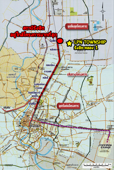 สำหรับโครงการอยู่ไม่ไกลจากรถไฟฟ้าสายสีแดง (บางซื่อ-รังสิต) "สถานีรังสิต" ค่ะ โดยสามารถนั่งมาลงสถานีรังสิตและต่อ Taxi เข้ามานิดเดียวก็ถึงโครงการแล้วค่ะ สำหรับรถไฟฟ้าสายสีแดงนั้นคาดว่าจะแล้วเสร็จ พร้อมเปิดบริการประมาณปี 2562 ค่ะ