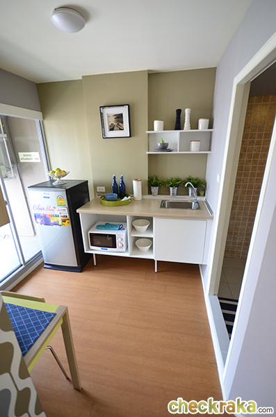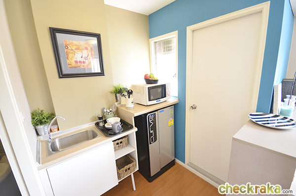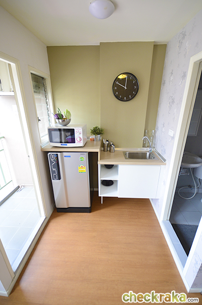 มาพร้อมกับซิงค์ล้างจาน มีพื้นที่พอเหมาะให้วางตู้เย็นได้ด้วย