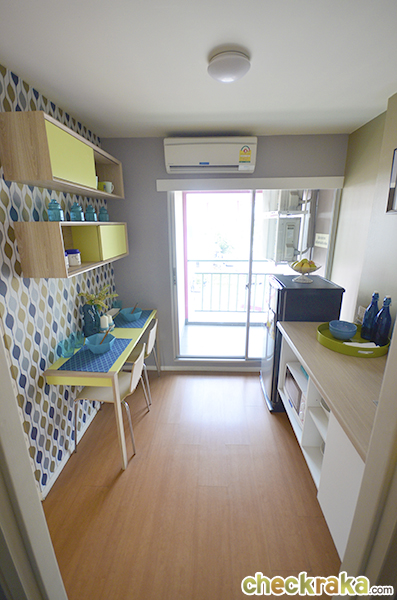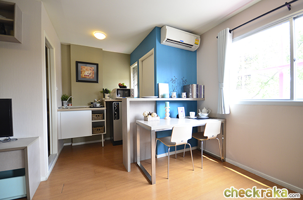 ฝั่งตรงข้ามกับเคาน์เตอร์ครัว ทางโครงการจัดเป็นพื้นที่รับประทานอาหาร วางของไว้ให้ค่ะ
