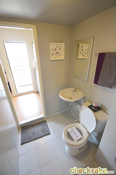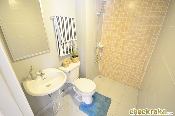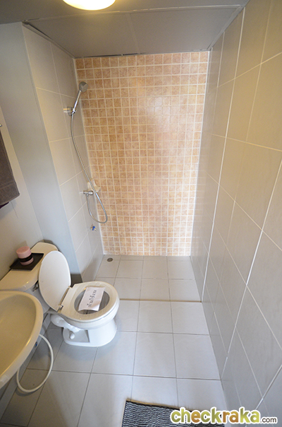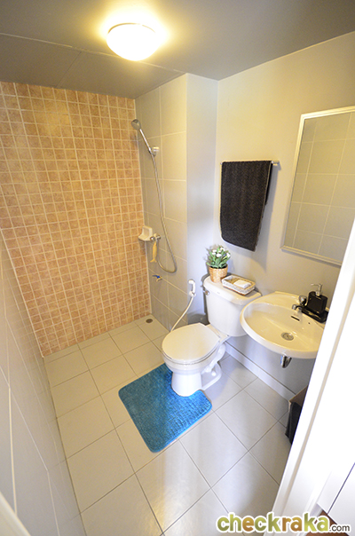 ภายในห้องน้ำไม่ได้แยกส่วนเปียกส่วนแห้งให้ อาจจะต้องหาม่านมากั้นหรือติดตั้ง shower box เล็กๆ ค่ะ