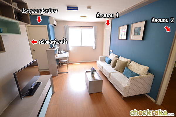 โซนรับแขกกว้างขวางมากค่ะ ห้องนอนจะอยู่ทางขวามือทั้ง 2 ห้อง