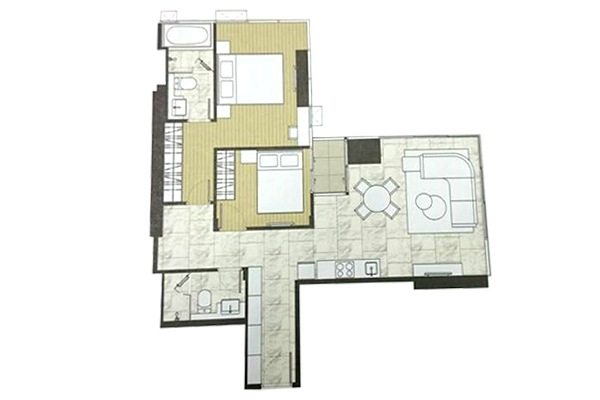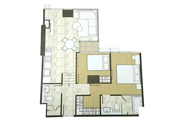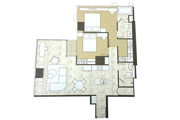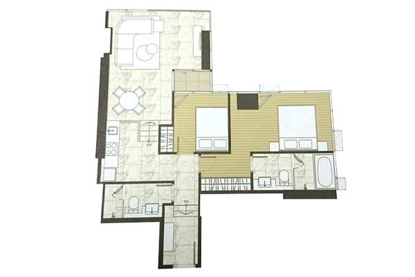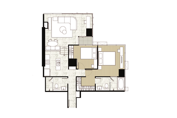 ตัวอย่าง ห้องแบบ 2 ห้องนอน 2 ห้องน้ำ ( Vertical Interlocking ) - พื้นที่ใช้สอย 86.00-86.50 ตร.ม.