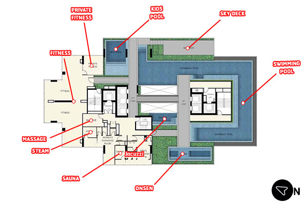 Master Plan ของโครงการ แอชตัน สีลม (Ashton Silom) ชั้น 34-34M เป็นชั้น Facilities เช่น สระว่ายน้ำระบบโอโซน, ฟิตเนส, ซาวน่า, ออนเซ็น, จากุซซี่, ฯลฯ
