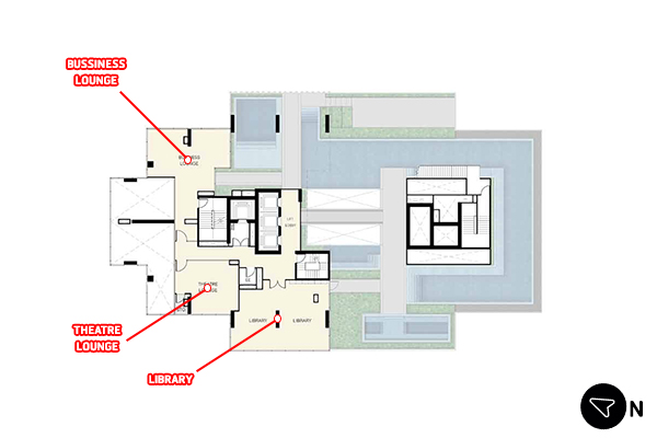 Floor Plan ชั้น 34M อีกหนึ่งชั้น Facilities ประกอบไปด้วย พื้นที่ทำงาน, มุมภาพยนตร์ และห้องสมุด