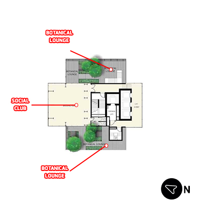 Alfresco Living Plaza พื้นที่สีเขียวหน้าโครงการ ภาพจำลอง Social Club บนชั้น 48 (Roof Top)