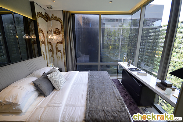 สำหรับห้องนอนใหญ่ ผนังส่วนใหญ่ก็ยังเน้นความเป็นกระจกเช่นเดิมค่ะ