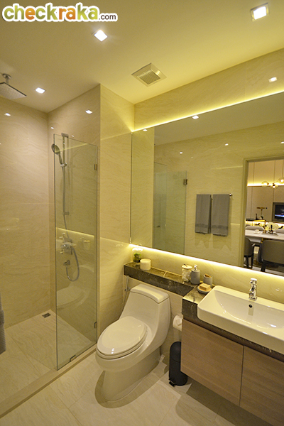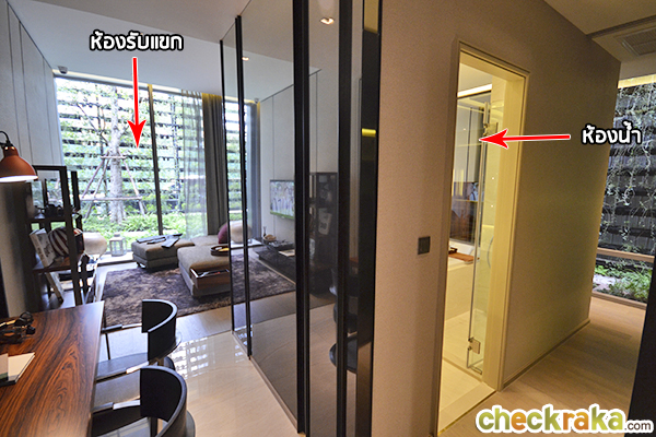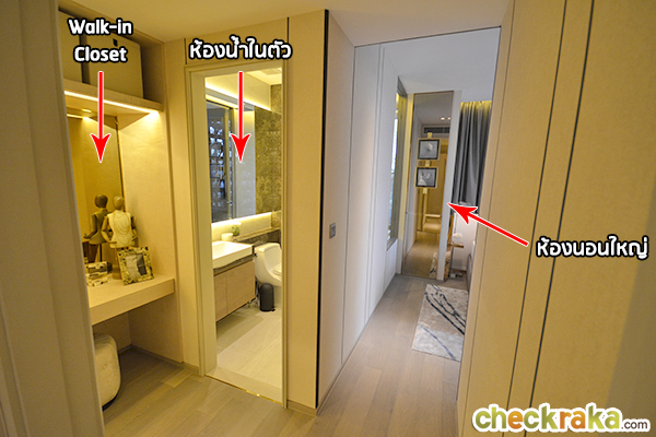 Kohler และ Grohe องค์ประกอบเหมือนห้องแบบอื่นๆ ค่ะ จากห้องจะเป็นทางเชื่อมไปยังห้องต่างๆ ด้านหน้ายังมีที่ว่างที่เราสามารถ Built-in เป็นตู้โชว์หรือตู้เก็บหนังสือ