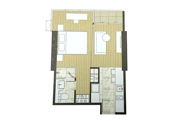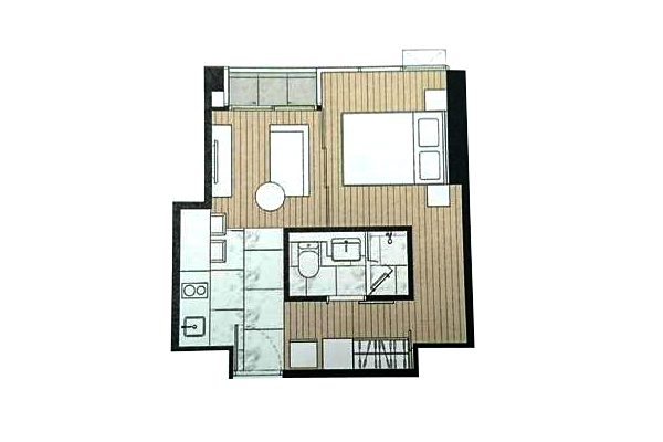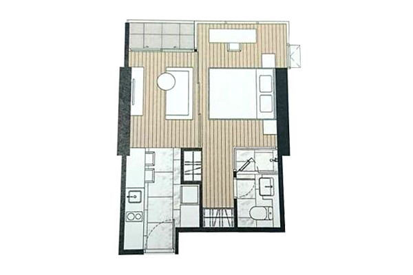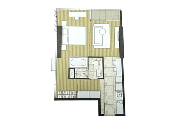 ห้องแบบ 1 ห้องนอน 1 ห้องน้ำ : ห้องแบบ 2 ห้องนอน 2 ห้องน้ำ : ตัวอย่าง ห้องแบบ 1 ห้องนอน 1 ห้องน้ำ - พื้นที่ใช้สอย 48.50-49.50 ตร.ม.