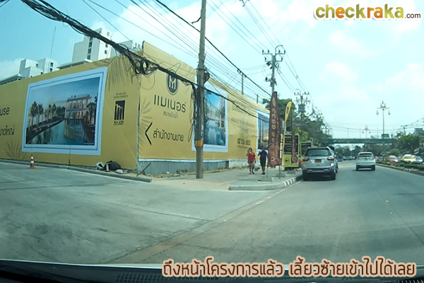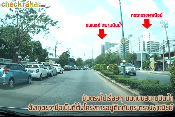 จากหน้าโครงการมองออกไปยังถนนสนามบินน้ำ ด้านซ้ายมือสีเหลืองจะเป็นคอมมูนิตี้มอลล์ของโครงการ