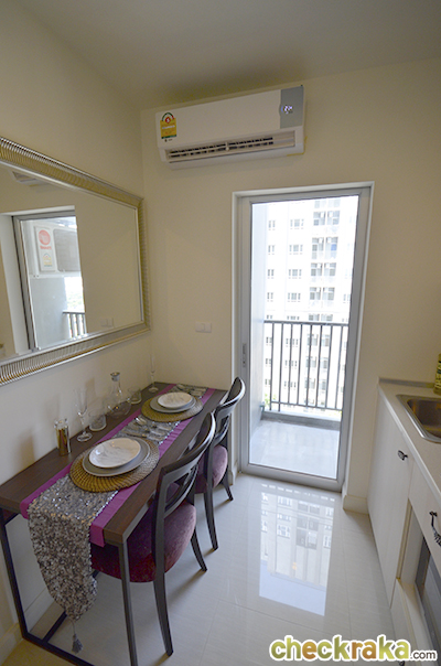 อีกฝั่งจะเป็นโต๊ะรับประทานอาหาร 2 ที่นั่ง ที่ทางโครงการให้มาด้วย ตรงส่วนนี้จะสว่างและโล่งพอสมควร