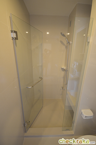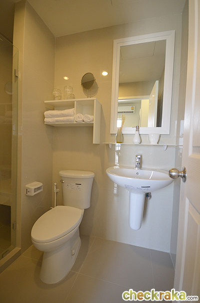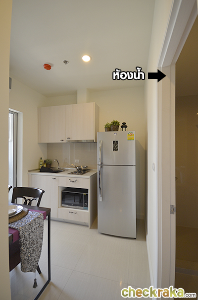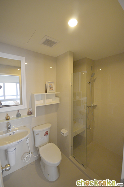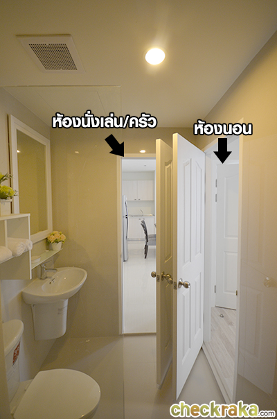 ต่อมาจะเป็นส่วนครัวและห้องน้ำค่ะ เราเข้าไปดูห้องน้ำกันก่อน
