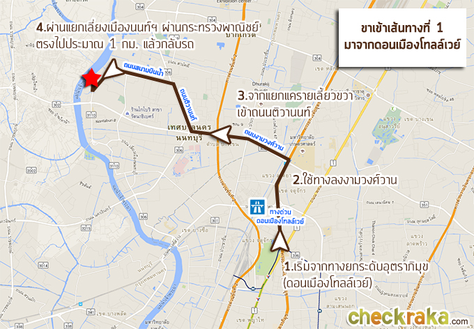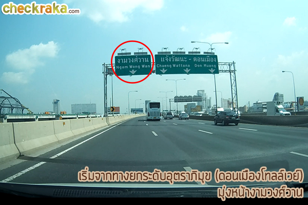 ขาเข้าโครงการเส้นทางที่ 1 - มาจากทางยกระดับอุตราภิมุข (ดอนเมืองโทลล์เวย์) มาดูภาพประกอบการเดินทางกันค่ะ โดยเราจะเริ่มจากทางยกระดับอุตราภิมุข หรือทางด่วนดอนเมืองโทลล์เวย์ค่ะ