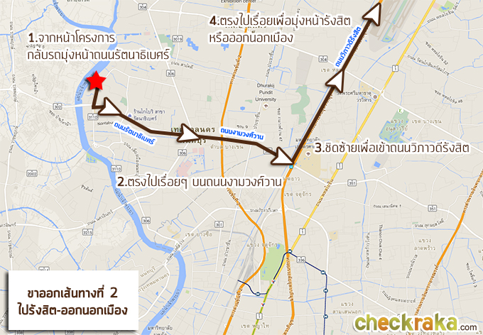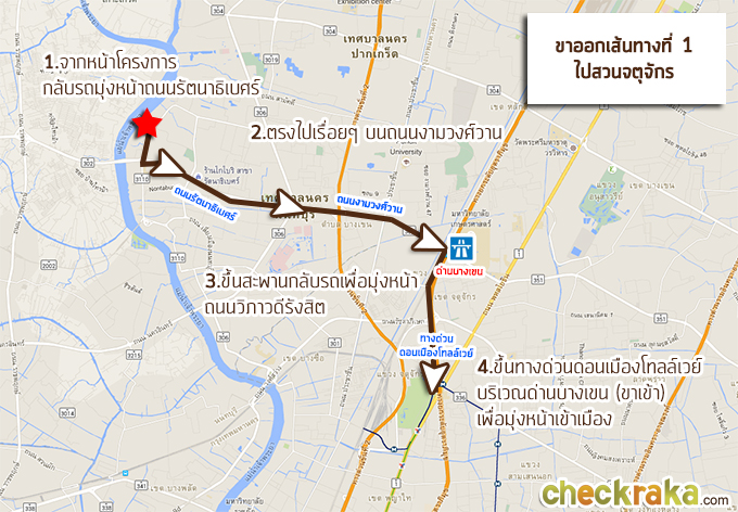 ขาเข้าโครงการเส้นทางที่ 2 - มาจากสนามบินดอนเมือง ขาออกโครงการเส้นทางที่ 1 - ไปสวนจตุจักร ขาออกโครงการเส้นทางที่ 2 - ไปรังสิต-ออกนอกเมือง 2. การเดินทางด้วยรถไฟฟ้า