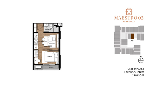 A6-1 : พื้นที่ใช้สอย 25.88 ตร.ม. (
