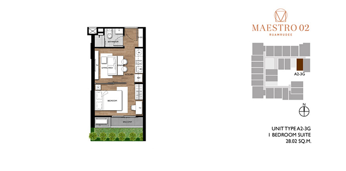 A2-3G : พื้นที่ใช้สอย 28.02 ตร.ม. (