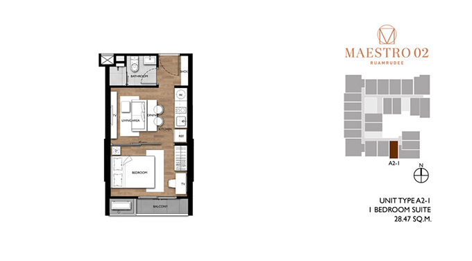 A2-1 : พื้นที่ใช้สอย 28.47 ตร.ม. (