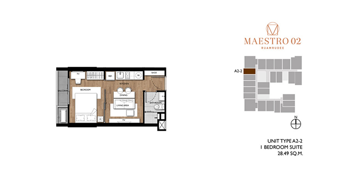 A2-2 : พื้นที่ใช้สอย 28.49 ตร.ม. (