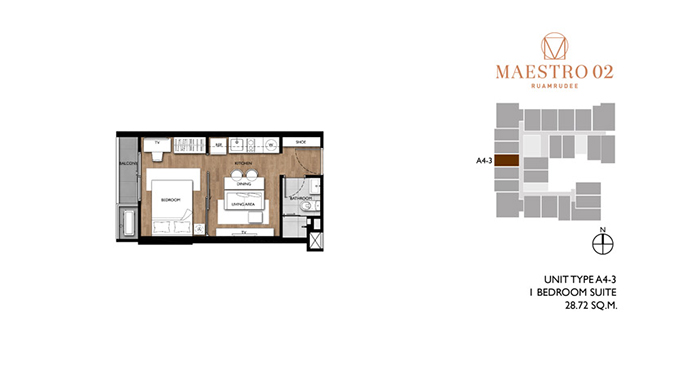 A4-3 : พื้นที่ใช้สอย 28.72 ตร.ม. (